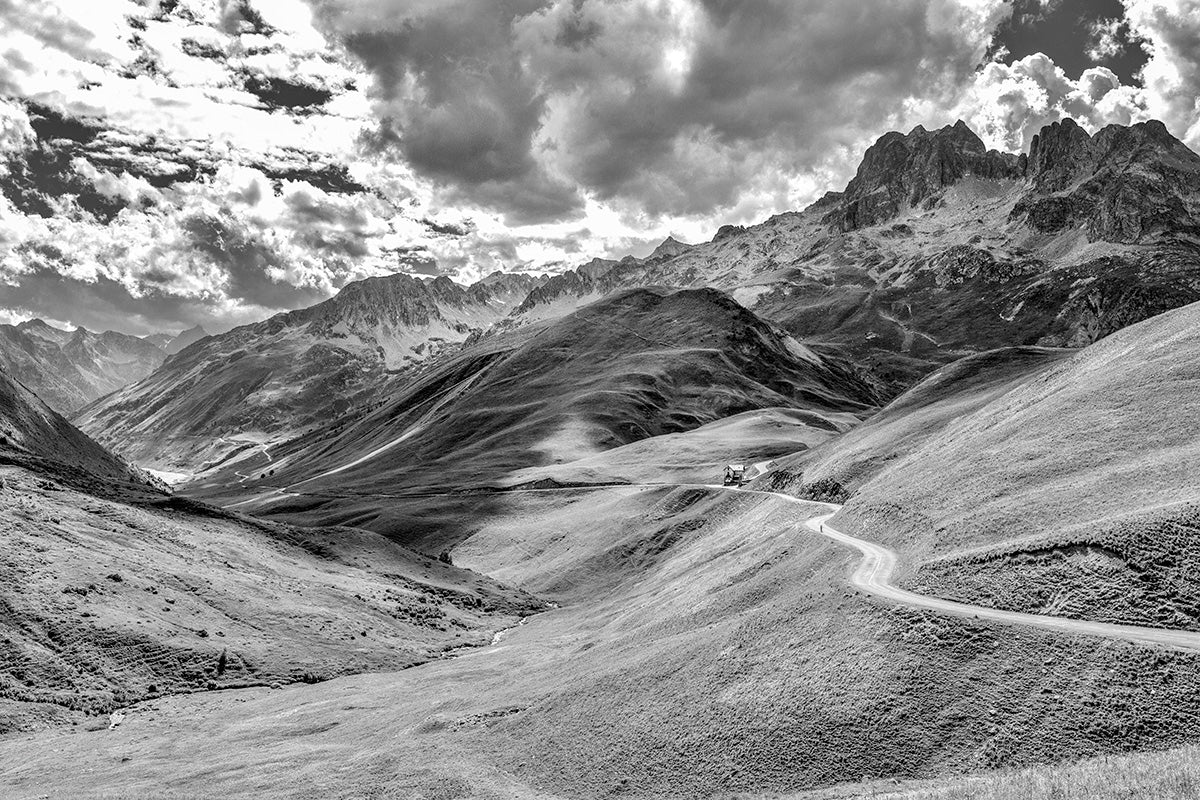 Contemporary cycling photography of the great European cycling climbs. Including iconic climbs of the Pyrenees, the Dolomites, and the French, Italian, and Swiss Alps. From the Passo Stelvio to the Col du Galibier, the Col du Tourmalet to the Col d'Aubisque. This contemporary photography captures the fundamental essence, beauty, and grandeur of these famous mountain passes, featured every year in the Tour de France, the Tour de Suisse, and the Giro d'Italia.