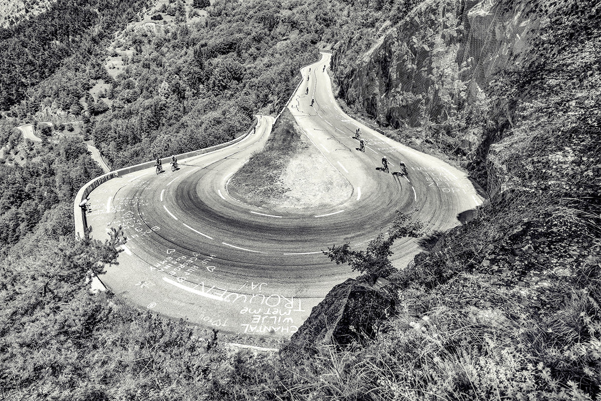 Alpe d’Huez - Bend 9 - Black and white duotone photography print