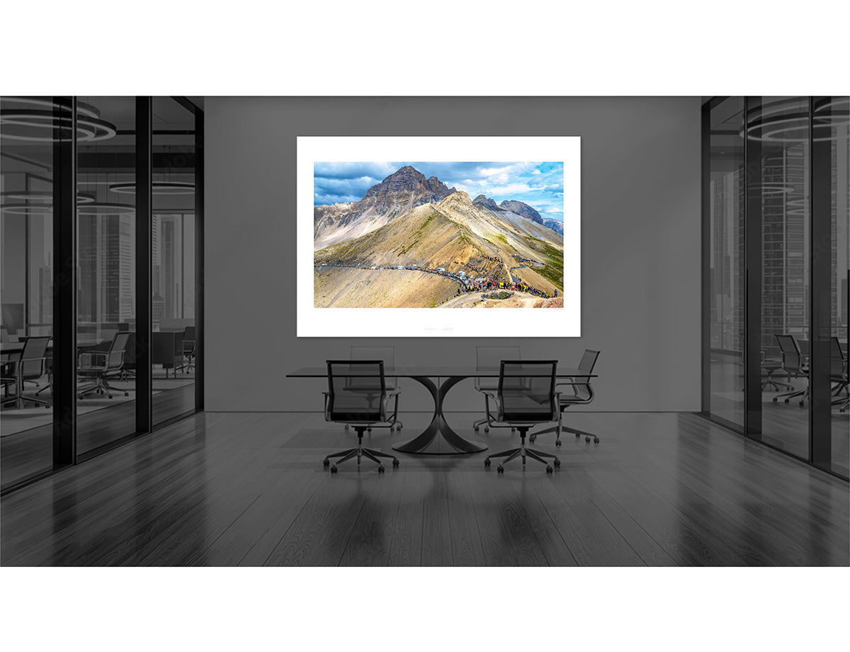 Le Grand Galibier is the name given to the mountain the Col du Galibier climbs. When the Tour de France visits it is the best seat in the house. From up here on this, the grandest of stages can be seen the entire drama of Le Tour being played out across this mountaintop arena. We waited all day like pilgrims for the Tour in the wind and rain and cold, when it finally arrived it brought with it the sun.